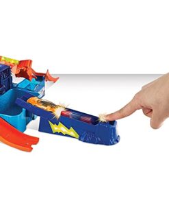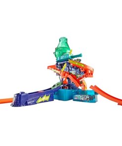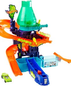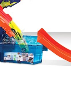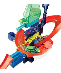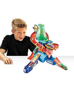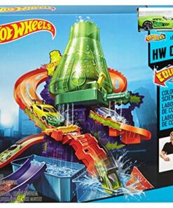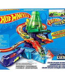 Discover lots of mad fun in the Hot Wheels Colour Shifters Colour Splash Science Lab where crazy colour change experiments can get out of control! A mad scientist has trapped a Colour Shifters car under the colour change waterfall and is experimenting with all sorts of insane colour combos! Launch into action, race your car around the track and release the trapped car to safety.